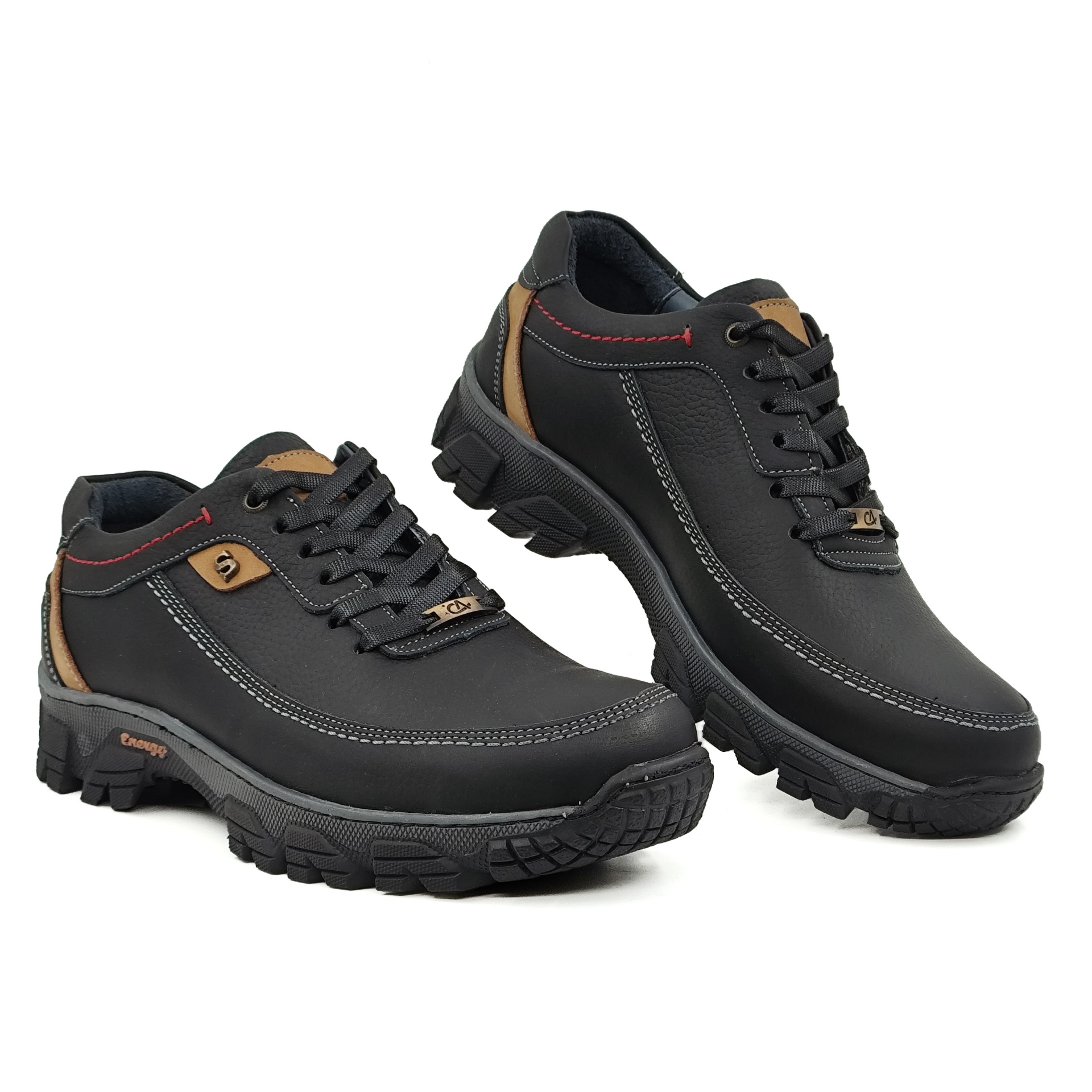 کفش اسپرت چرم هیرو در رنگ مشکی عرضه شده است که با جزئیات دوخت و طراحی اسپرت، جلوهای خاص و جذاب به استایل روزمره شما میبخشد. این کفش هم برای محل کار و هم برای فعالیتهای روزانه یا سفرهای شهری انتخابی بینقص خواهد بود.