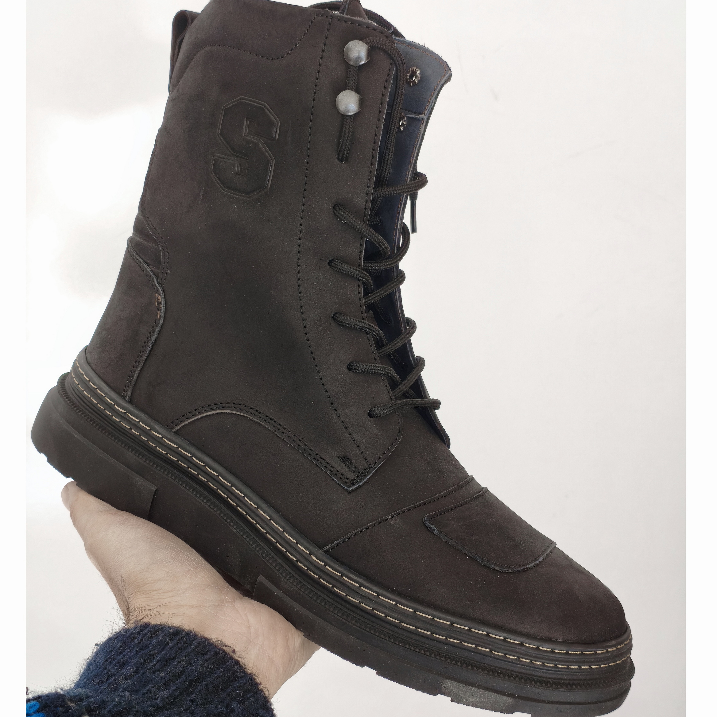 بوت مردانه چرم تبریز مدل SUB3 مشکی نابوک