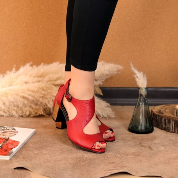 این کفش پاشنه دار مجلسی زنانه که به صندل زنانه تابستانی نیز معروف شده از چرم طبیعی گاوی و به صورت دستدوز تولید شده است. رویه این کفش زنانه مجلسی جدید و شیک از چرم طبیعی درجه یک ساخته شده است. آستر کفش نیز از چرم طبیعی ساخته شده است که مانع از عرق کردن و بو گرفتن پا میشود. کفی این کفش مجهز به پد طبی با رویه چرمی طراحی شده است و در استفاده طولانی مدت باعث میشود احساس خستگی نکنید. مهمترین بخش کفش یعنی زیره آن از جنس پلی اورتان با پاشنه چوبی ۶ سانتی است که سبک بوده و مقاومت سایشی بالایی دارد. تبریزچرم به عنوان مرجع فروش کفشهای تمام چرم، محصولات تولیدی چرم پاکو را به صورت آنلاین به فروش میرساند.